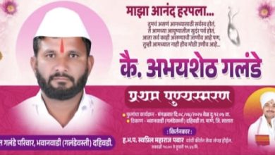 स्व. अभयशेठ गलंडे यांचे मंगळवार दि. ८ एप्रिल रोजी प्रथम पुण्यस्मरण ! पुण्यस्मरणासाठी उपस्थित रहावे,असे परिवाराचे विनम्र आवाहन…