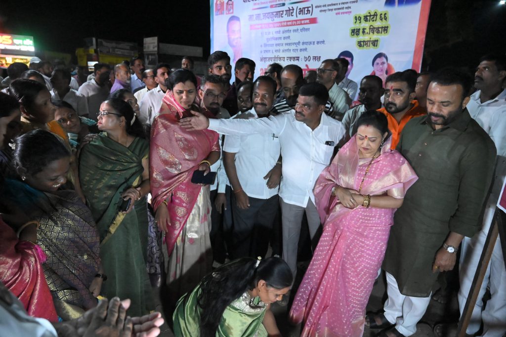 या ठिकाणी प्रत्येक प्रभागातील स्थानिक नगरसेवक तसेच प्रतिष्ठित नागरिक,महिला यांचेसह स्थानिक जनता मोठ्या प्रमाणात उपस्थित होती.दहिवडी शहरात होत असलेल्या विकास कामांमुळे जनतेत आनंदाचे वातावरण आहे. या विकास कामांच्या उद्घाटन शुभारंभ झाल्यानंतर ना.जयकुमार गोरे हे स्वाती मंगल कार्यालय दहिवडी येथे जाहीर सभेसाठी रवाना झाले.