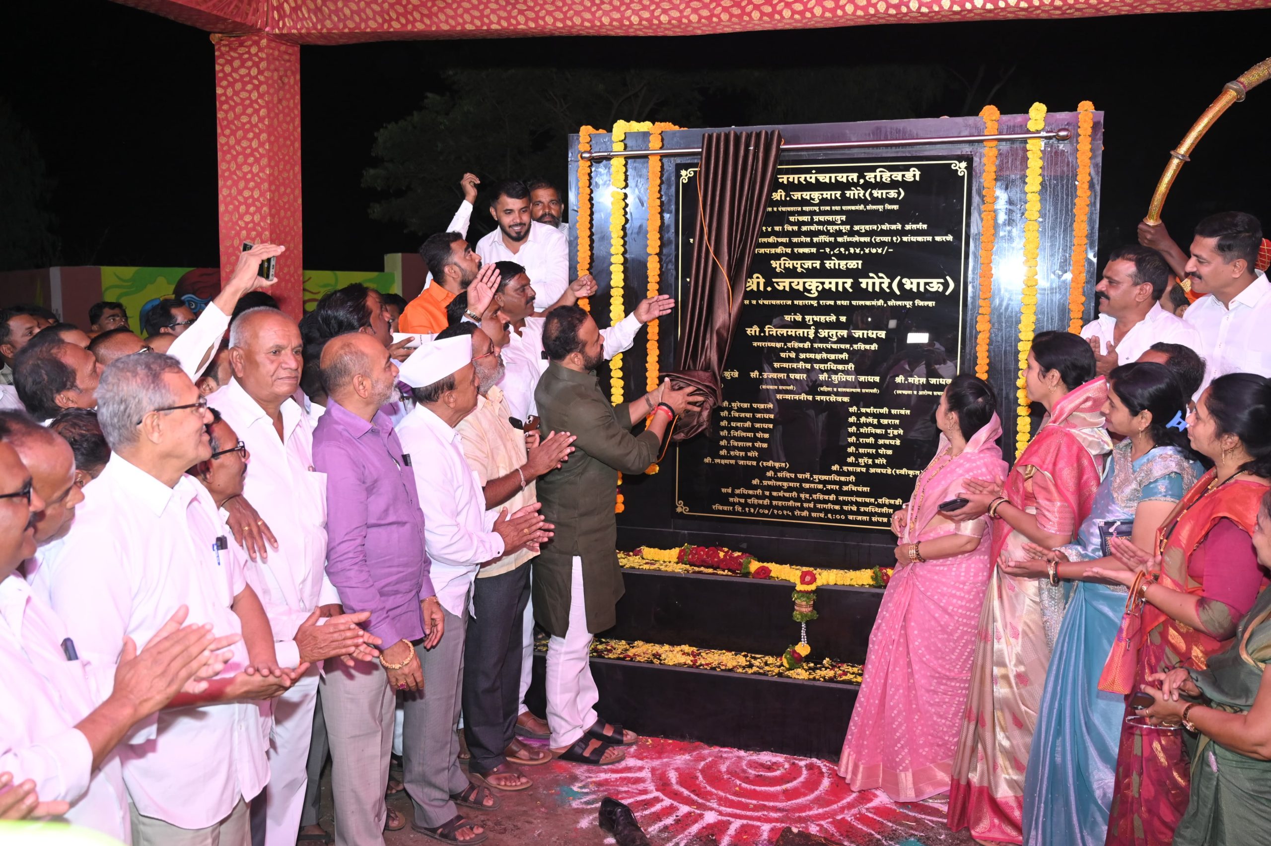 ग्रामविकास व पंचायत राज कॅबिनेट मंत्री, तथा सोलापूर जिल्हा पालकमंत्री जयकुमार गोरे यांच्या हस्ते सातारा जिल्ह्यातील, माण तालुक्याचे मुख्यालय असणाऱ्या दहिवडी शहरामध्ये १५ कोटी ६६ लाख रुपयांच्या विकास कामांचे भूमिपूजन रविवार १३ जुलै रोजी रात्री ७ ते ९ वाजताचे दरम्यान दहिवडीत मोठ्या उल्हास पूर्ण वातावरणात पार पडले.यानिमित्ताने मंत्री श्री.गोरे यांच्या प्रति कृतज्ञता व्यक्त करण्याच्या उद्देशाने; नवनिर्वाचित नगराध्यक्षा सौ.निलम अतुल जाधव यांच्या संकल्पनेतून भूमिपूजन सोहळा झाल्यानंतर, मंत्री श्री. गोरे यांचा भव्य सत्कार समारंभ व जाहीर सभा स्वाती मंगल कार्यालय येथे रात्री ९ ते १० या वेळेत पूर्ण झाली.