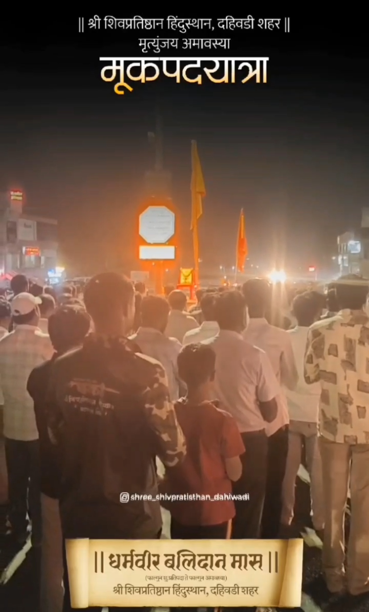 फाल्गुन अमावस्येला म्हणजेच आंग्ल दि. १८ मार्च बुधवार रोजी सायंकाळी ठिक ६:३० वा दहिवडी शहरात मुकपदयात्रेच आयोजन श्री शिवप्रतिष्ठान हिंदुस्तान माण तालुक्याच्या वतीने करण्यात आले होते. या मुकपदयात्रेची सुरुवात हि छत्रपती श्री शिवाजी महाराज चौकातून होऊन पुढे डॉ. बाबासाहेब आंबेडकर चौक – बाजार पटांगण – चावडी चौक – सुतार गल्ली – श्री गणेश मंदिर -‌ आद्यक्रांतिवीर उमाजी राजे नाईक चौक – बाजार पटांगण मार्गे – छत्रपती श्री शिवाजी महाराज चौक येथे येऊन ध्येयमंत्र व श्री संभाजीसुर्यह्यदयजाळाचे पठण करुन समारोप झाला. यावेळी धर्मवीर छत्रपती श्री संभाजी महाराजांना श्रध्दांजली वाहण्यासाठी दहिवडी व दहिवडी पंचक्रोशीसह माण तालुक्यातील तमाम शिवप्रेमींनी, हिंदू धर्म बांधवांनी तसेच सुजान नागरिकांनी मोठ्या संख्येने उपस्थित दर्शविली. श्री शिवप्रतिष्ठान हिंदुस्थान माण तालुका यांच्या वतीने पाळण्यात आलेला बलिदान मास व मूकपद यात्रा यामुळे परिसरात श्री छत्रपती संभाजी महाराजांबद्दल आदराची व कृतज्ञतेची भावना मोठ्या प्रमाणात वाढीस लागली आहे. “देहाचा त्याग केला, पण स्वाभिमान सोडला नाही, शंभूराजांचा बलिदान मराठा इतिहास विसरणार नाही!”